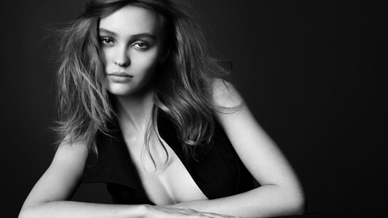 Wallpaper Actress Lily Rose Melody Depp black and white photo