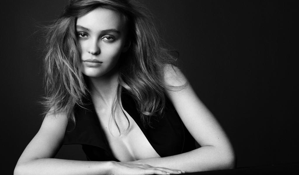 Wallpaper Actress Lily Rose Melody Depp black and white photo