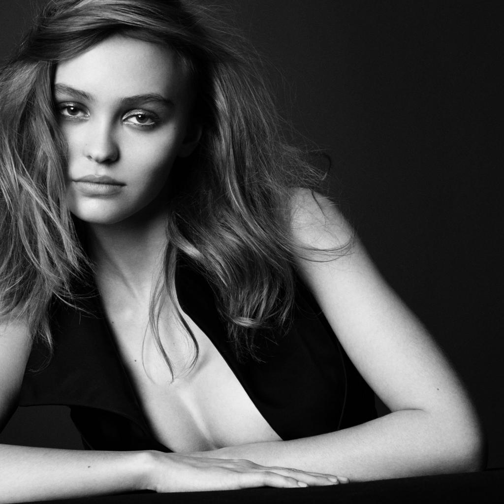 Wallpaper Actress Lily Rose Melody Depp black and white photo