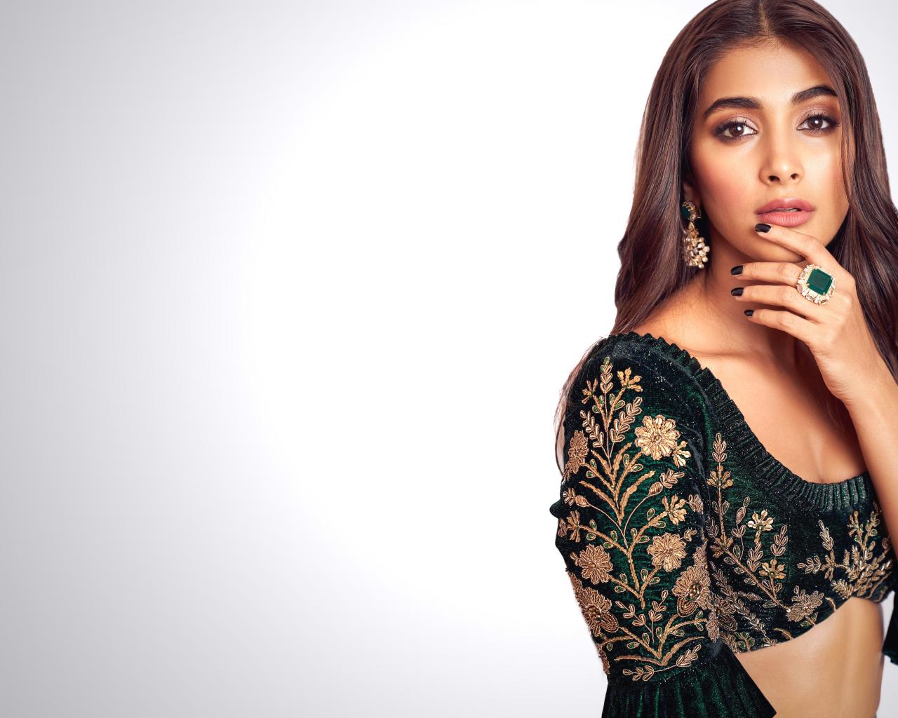 Wallpaper Indian actress Puja Hegde in a beautiful sari