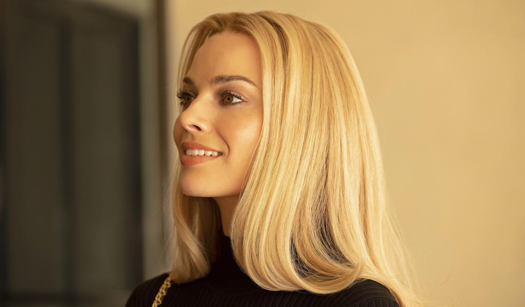 Wallpaper Smiling blonde actress Margot Robbie with brown eyes