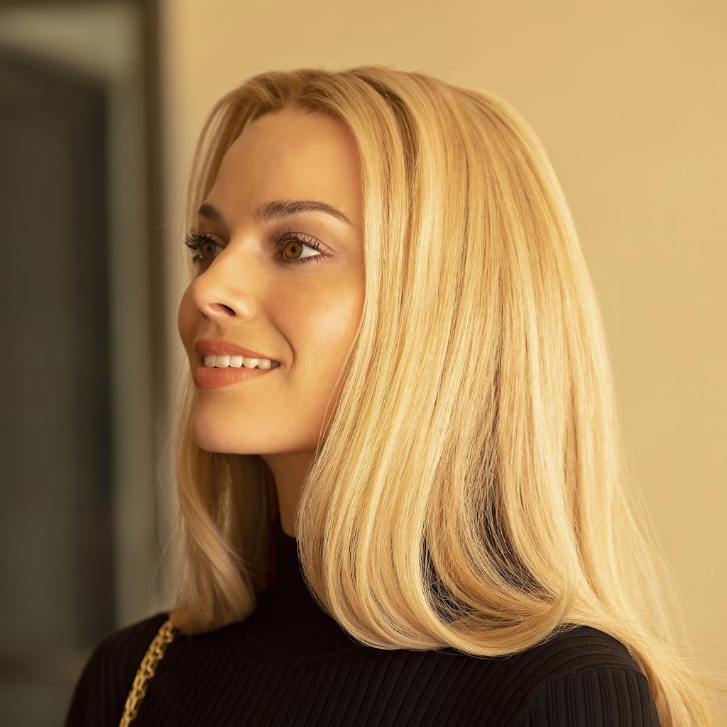 Wallpaper Smiling blonde actress Margot Robbie with brown eyes