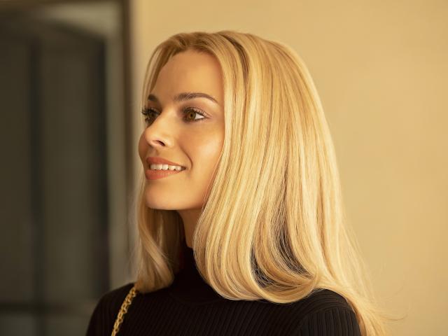Wallpaper Smiling blonde actress Margot Robbie with brown eyes