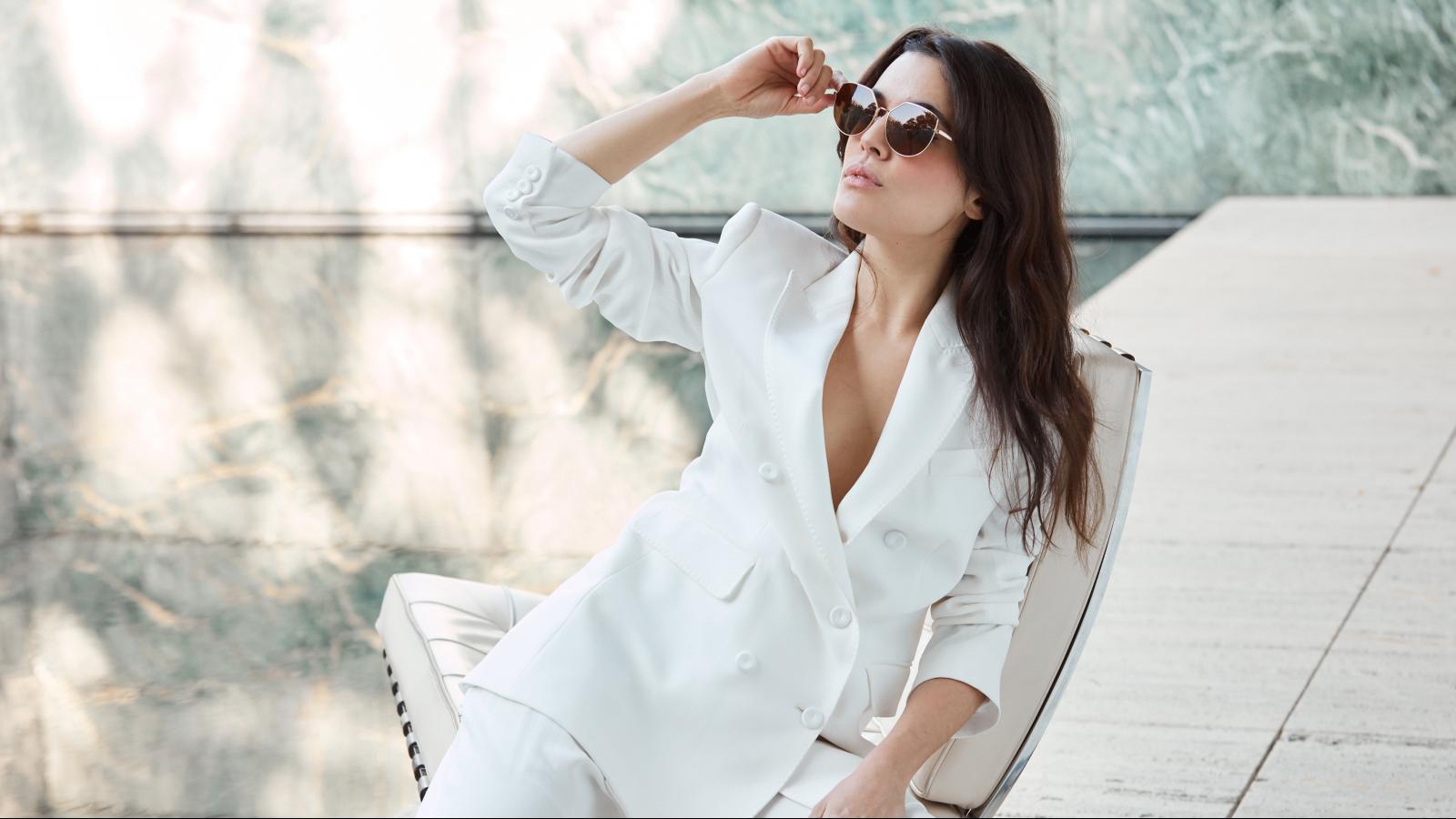 Wallpaper Spanish film actress Adriana Ugarte in a white suit