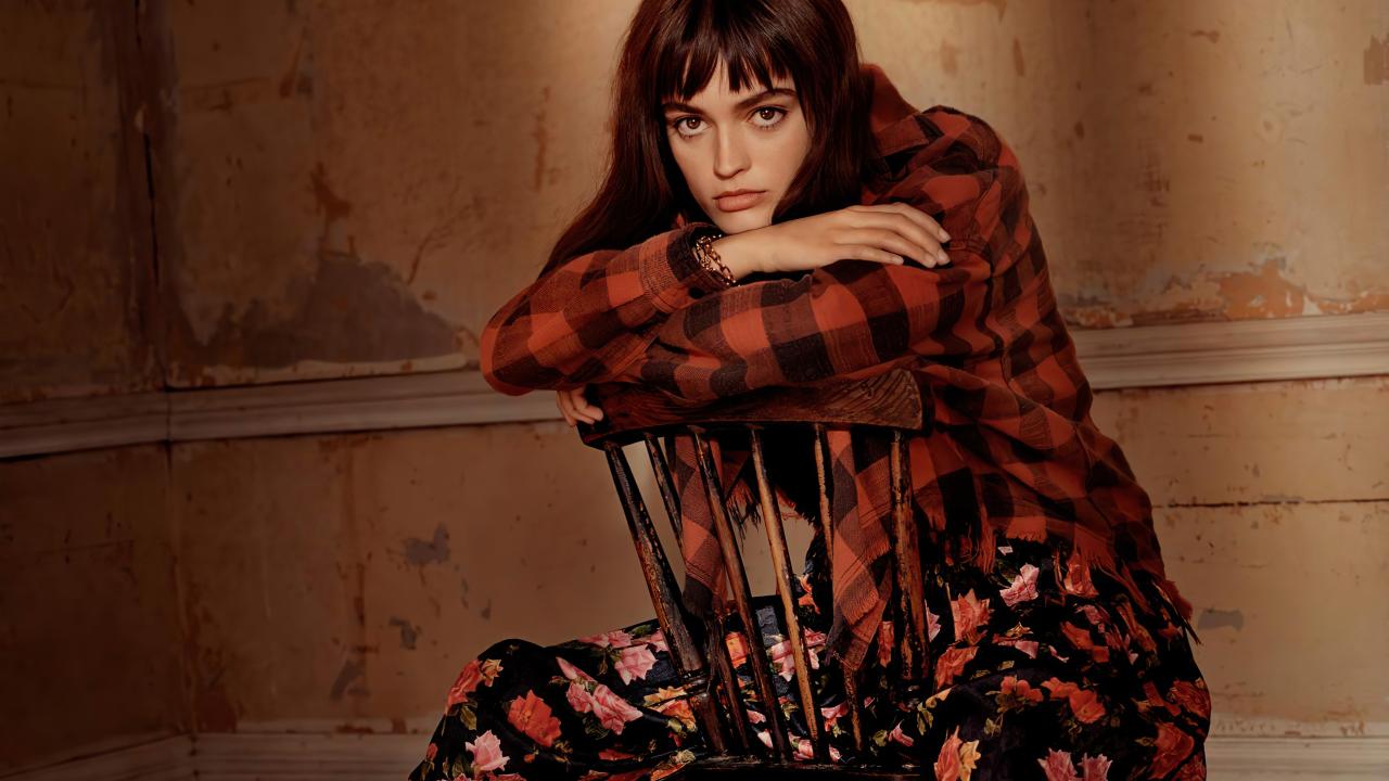 Wallpaper French actress Emma McKee sits on a chair
