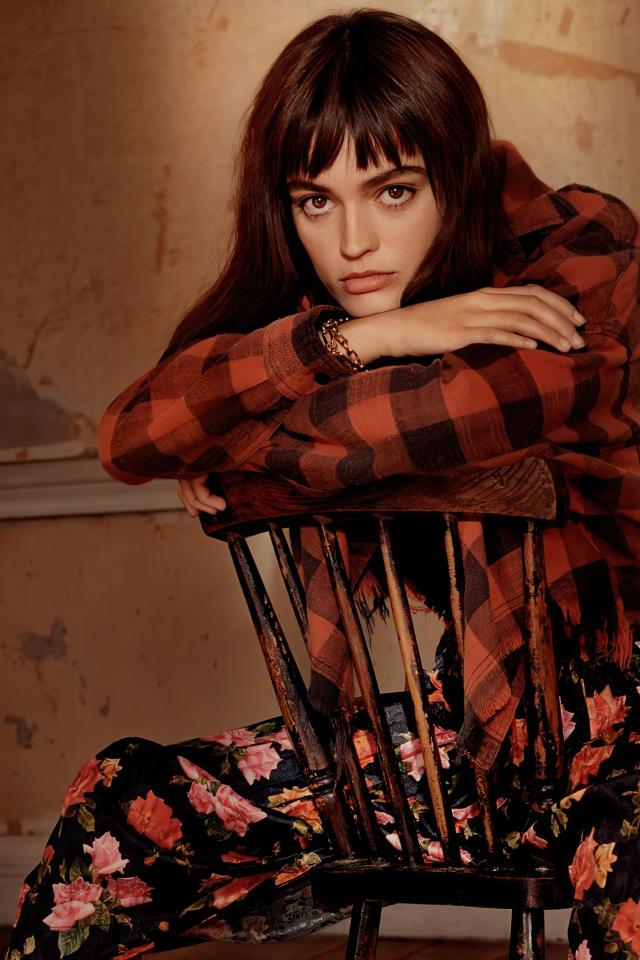 Wallpaper French actress Emma McKee sits on a chair