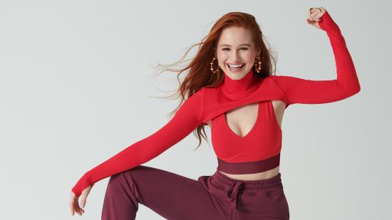 Wallpaper Smiling actress Madeline Petsch in a red outfit