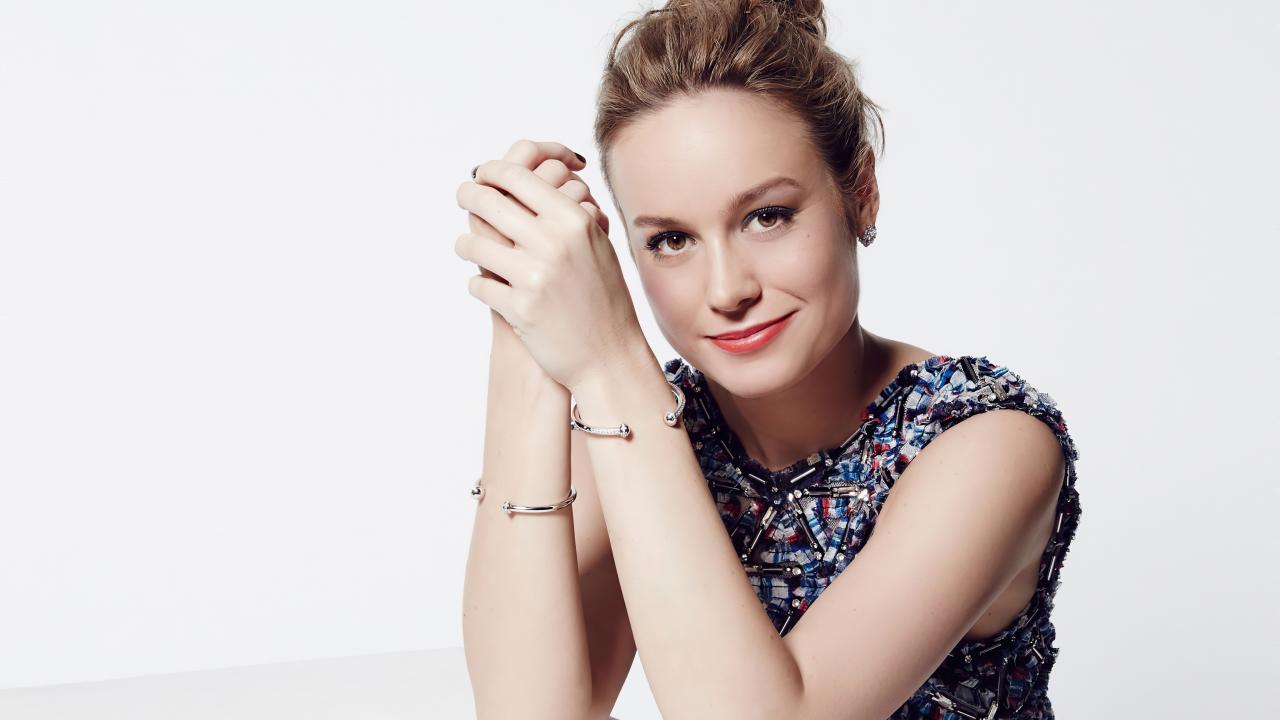 Wallpaper Actress Brie Larson with a cute smile on a white background