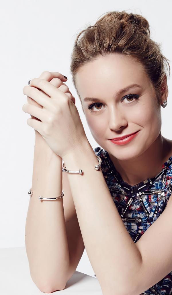 Wallpaper Actress Brie Larson with a cute smile on a white background