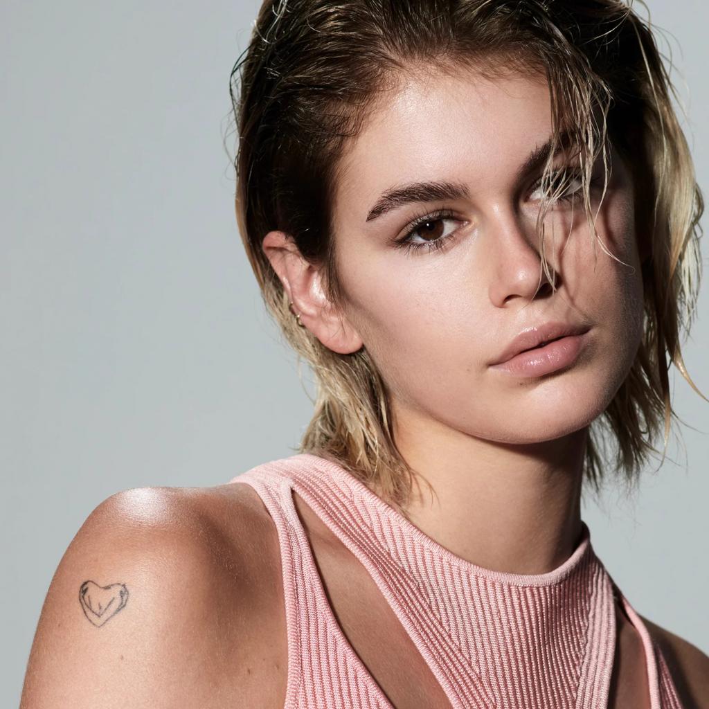 Wallpaper Actress Kaia Gerber with shoulder tattoo