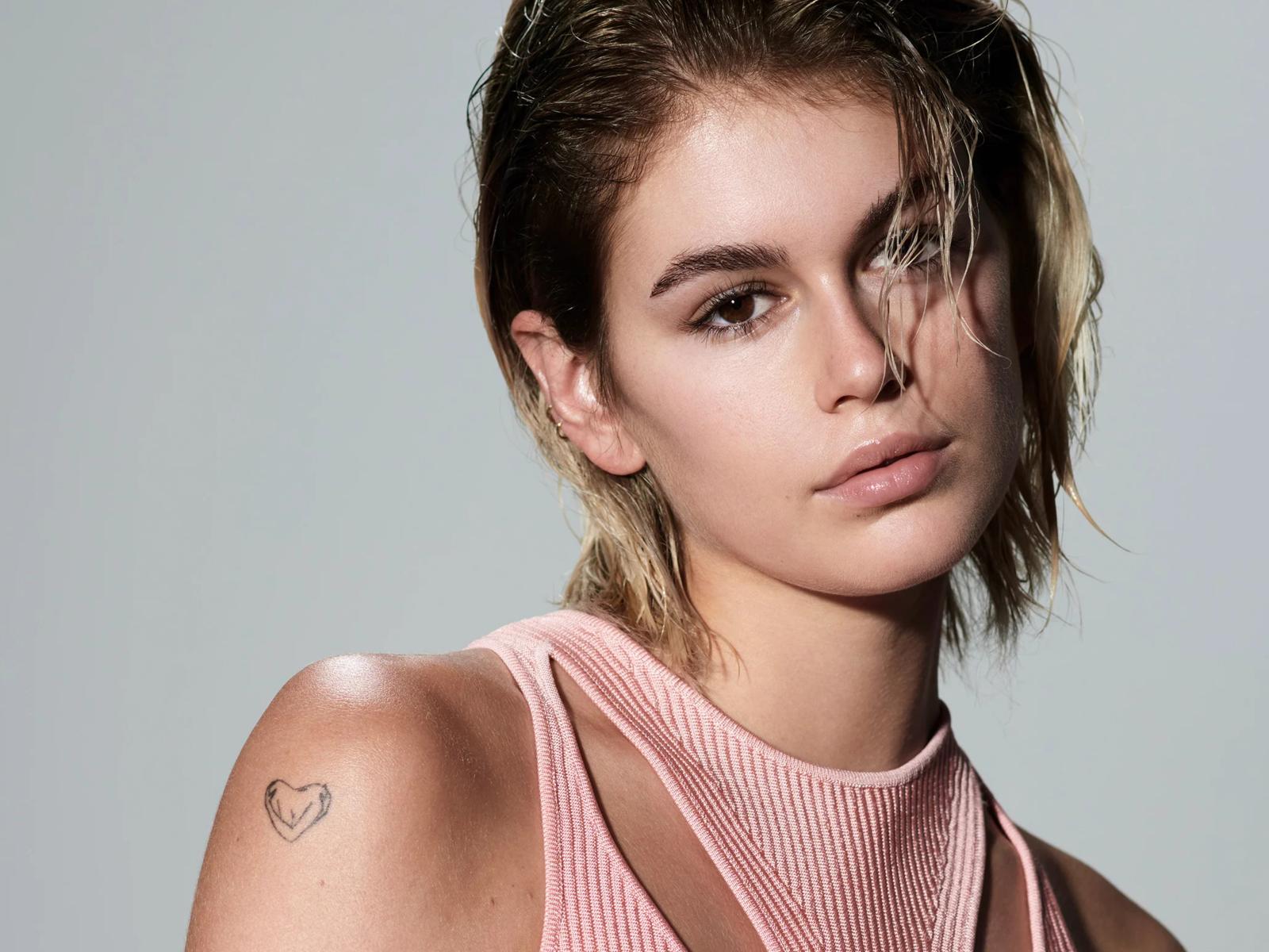 Wallpaper Actress Kaia Gerber with shoulder tattoo