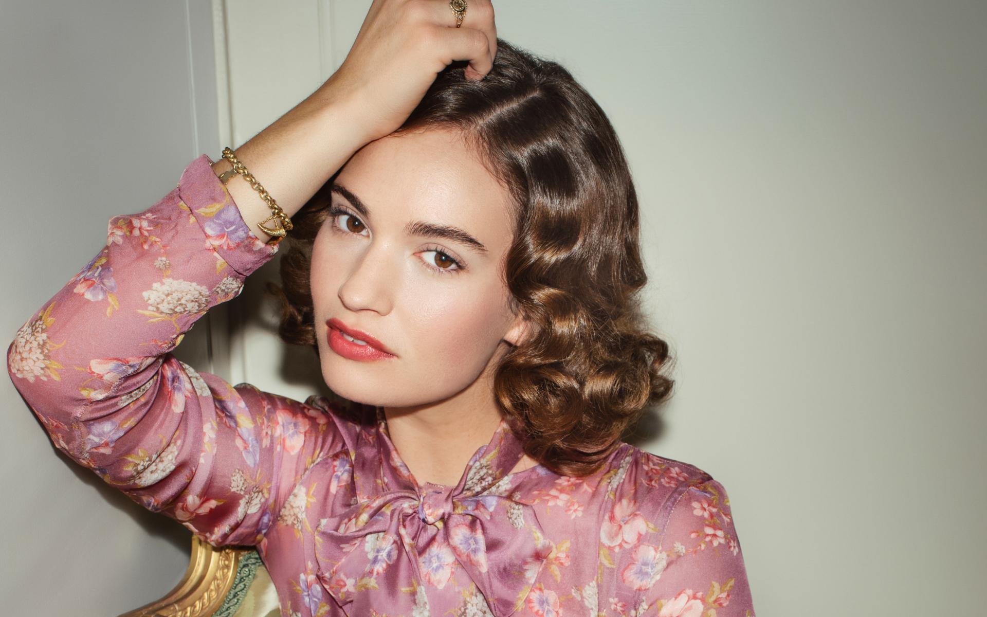 Wallpaper Actress Lily James on gray background