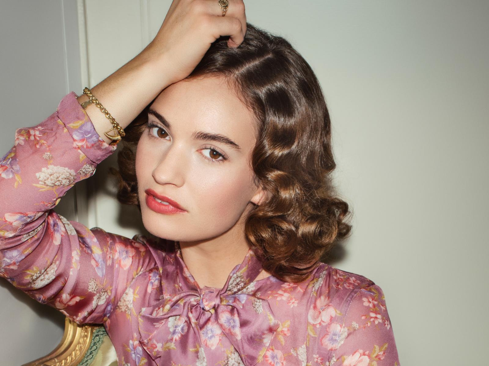 Wallpaper Actress Lily James on gray background