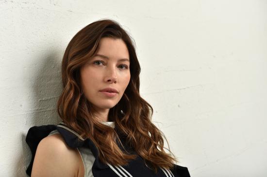 Wallpaper Sad actress Jessica Biel sits against the wall