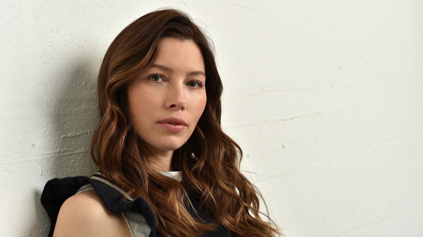 Wallpaper Sad actress Jessica Biel sits against the wall