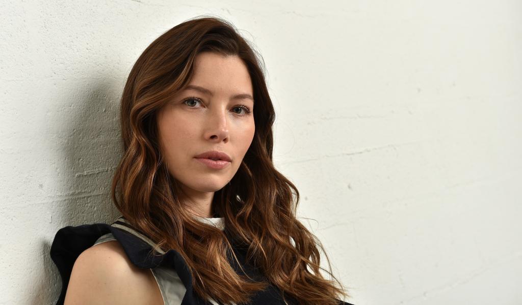 Wallpaper Sad actress Jessica Biel sits against the wall