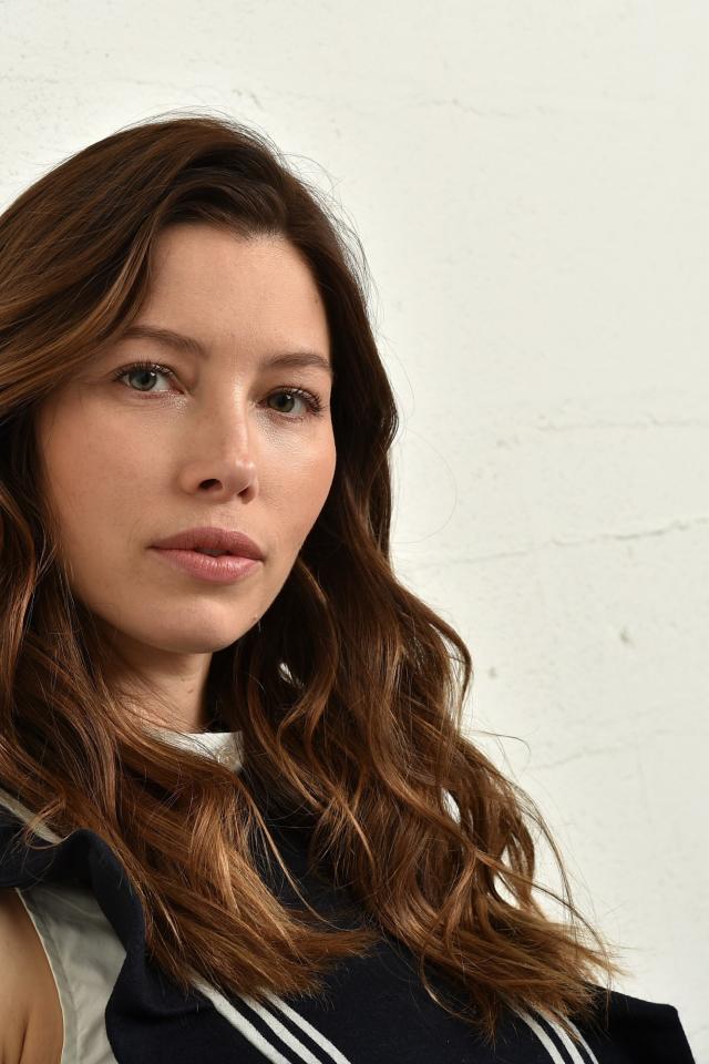 Wallpaper Sad actress Jessica Biel sits against the wall