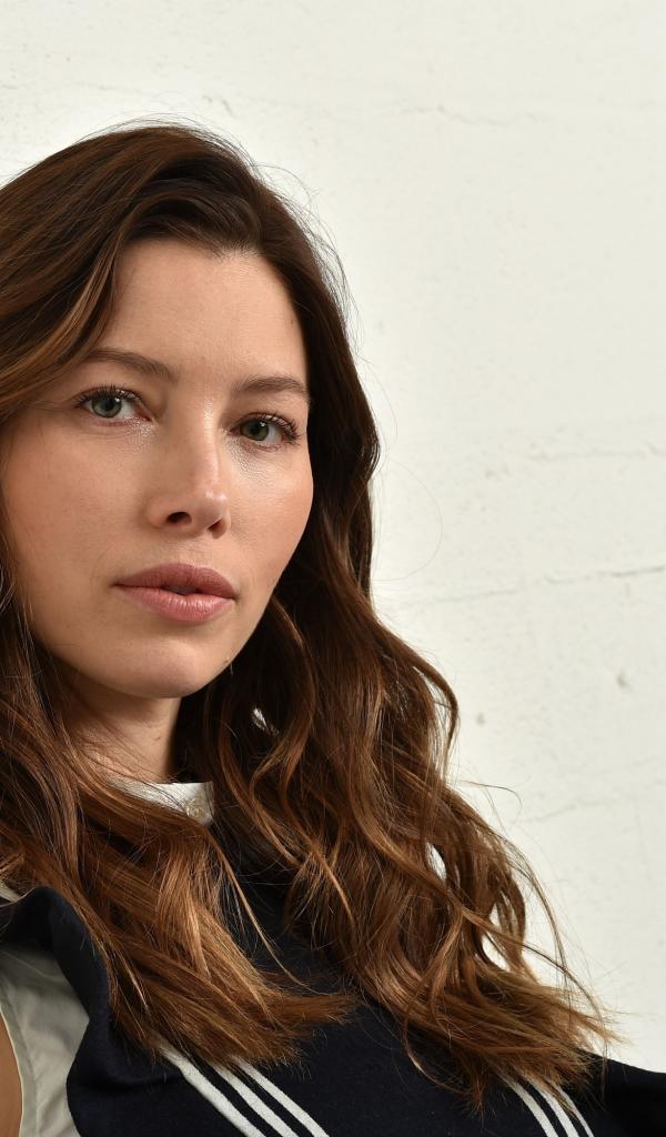 Wallpaper Sad actress Jessica Biel sits against the wall