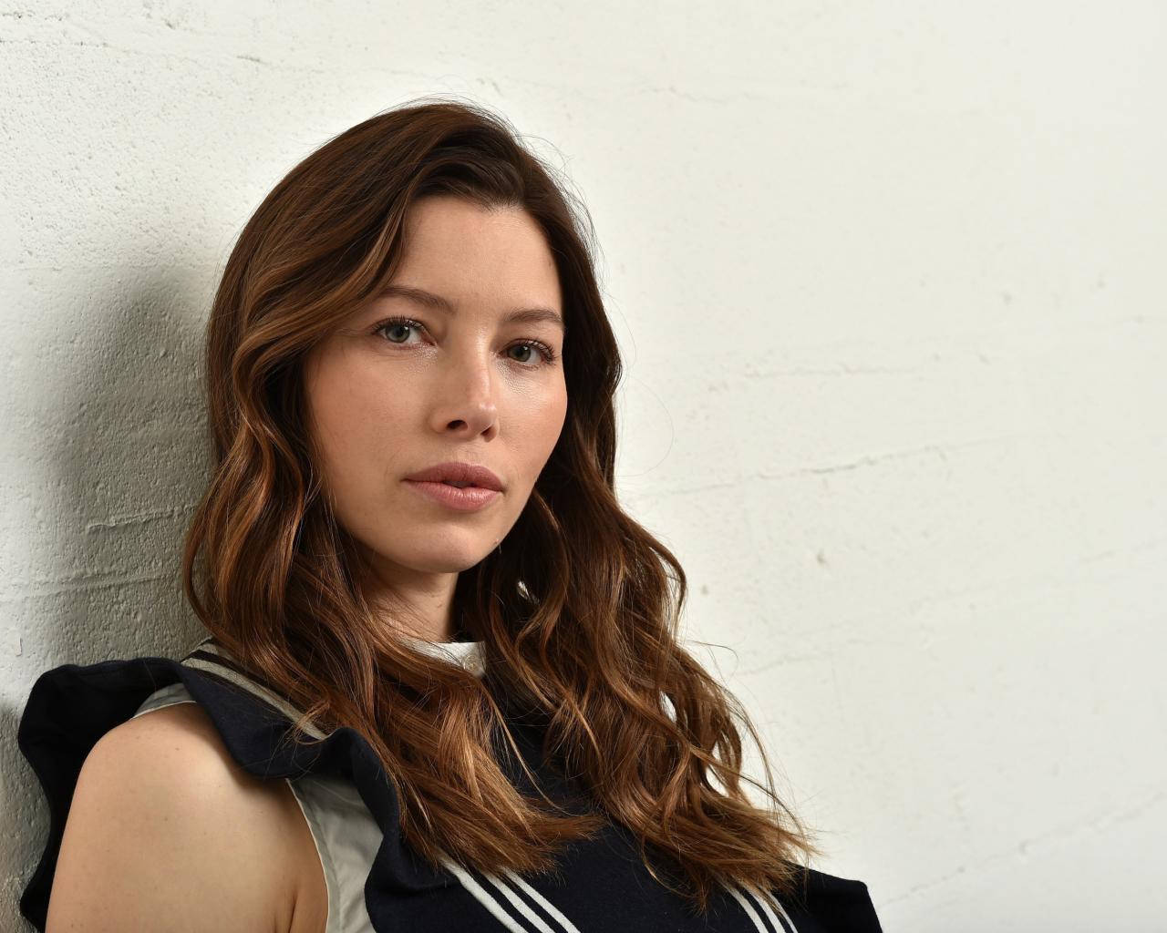 Wallpaper Sad actress Jessica Biel sits against the wall