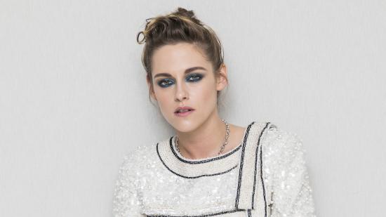 Wallpaper Actress Kristen Stewart with painted eyes against a gray wall