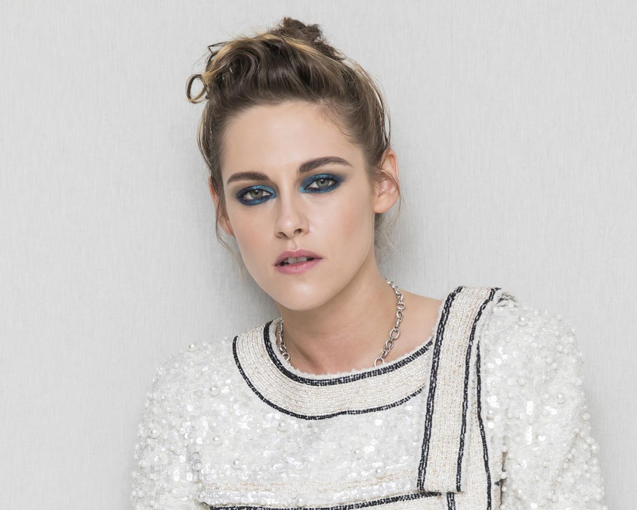 Wallpaper Actress Kristen Stewart with painted eyes against a gray wall