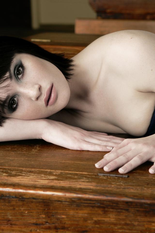 Wallpaper Actress Gemma Arterton lies on a wooden table
