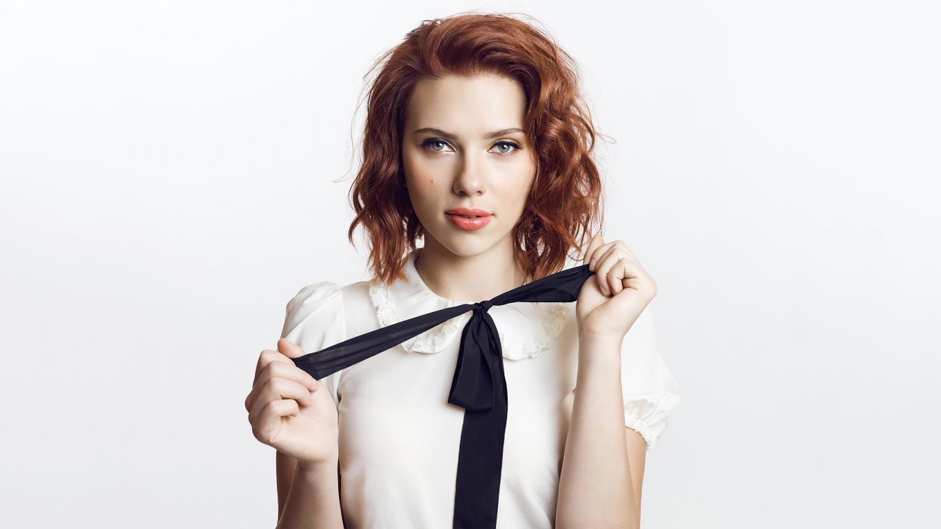 Wallpaper Red-haired actress Scarlett Johansson with black tie