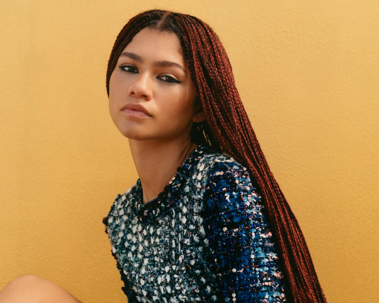 Wallpaper Actress Zendaya with pigtails on her head