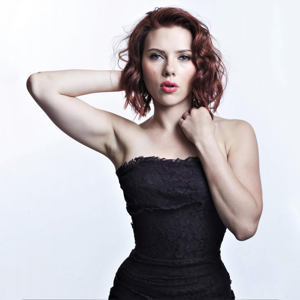Wallpaper Actress Scarlett Johansson in black dress on white background
