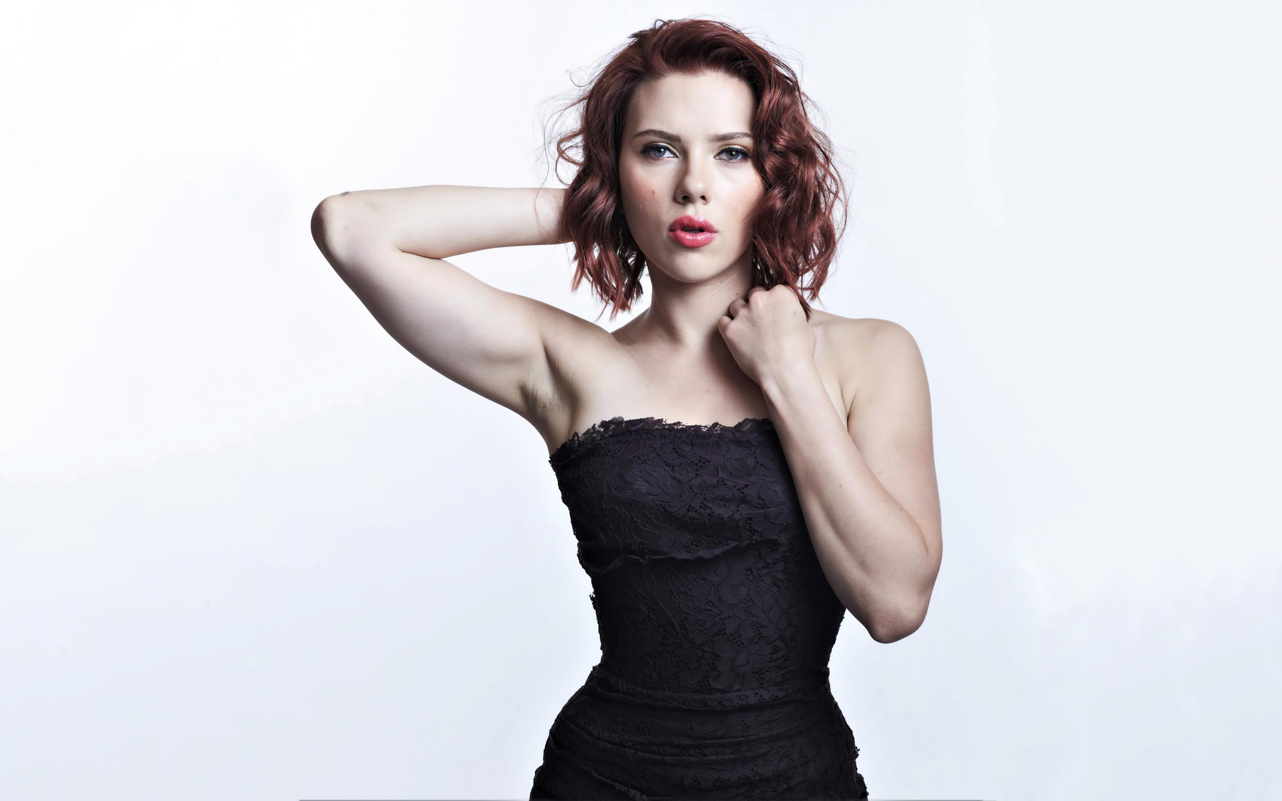 Wallpaper Actress Scarlett Johansson in black dress on white background