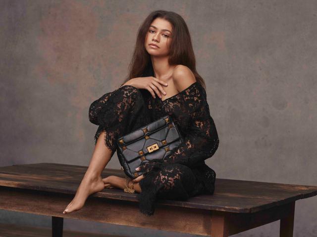 Wallpaper American actress and singer Zendaya in a black dress on the table