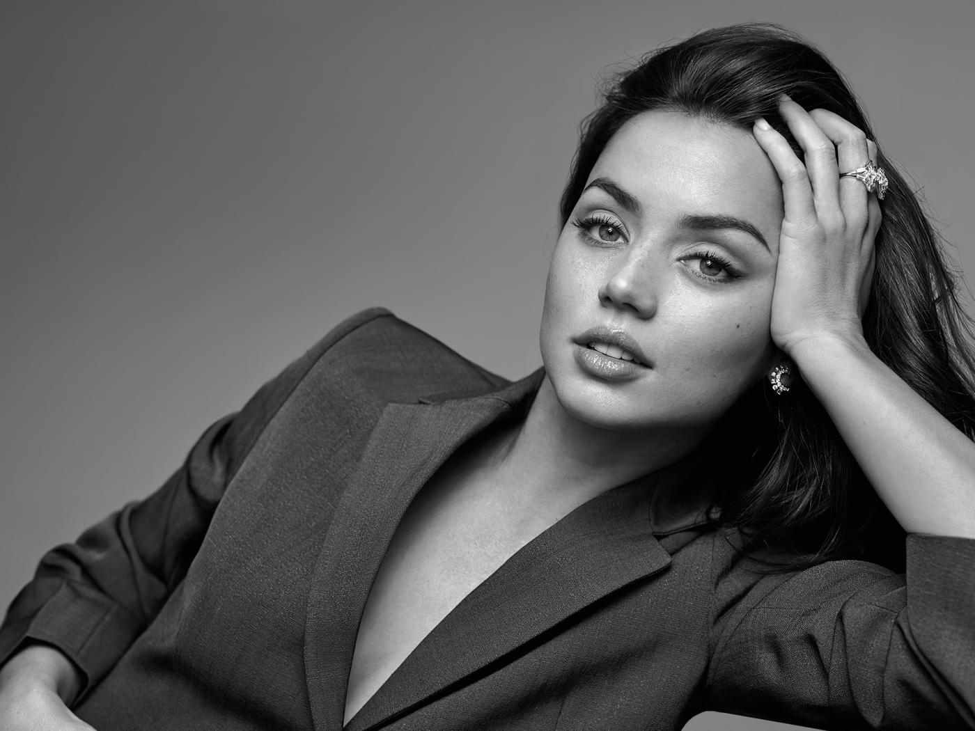 Wallpaper Actress Ana de Armas in a jacket on a gray background