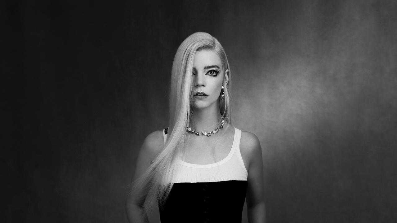 Wallpaper Beautiful blonde actress Anya Taylor-Joy black and white photo
