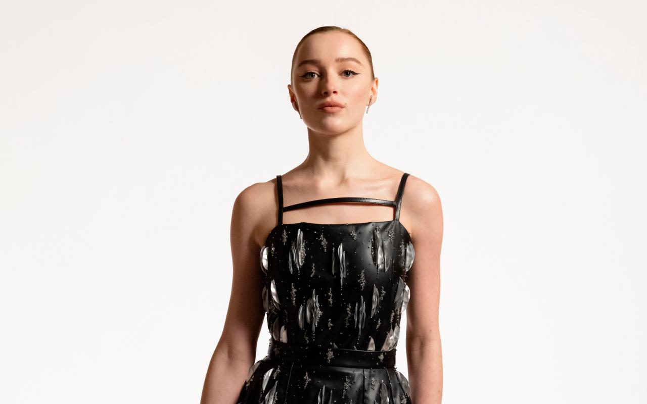 Wallpaper English actress Phoebe Daynevor in a dress on a white background