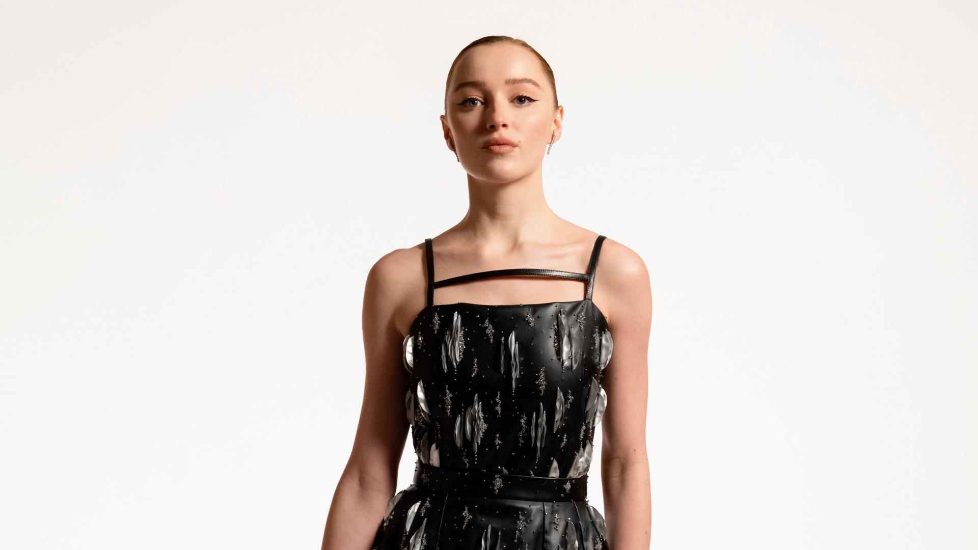Wallpaper English actress Phoebe Daynevor in a dress on a white background