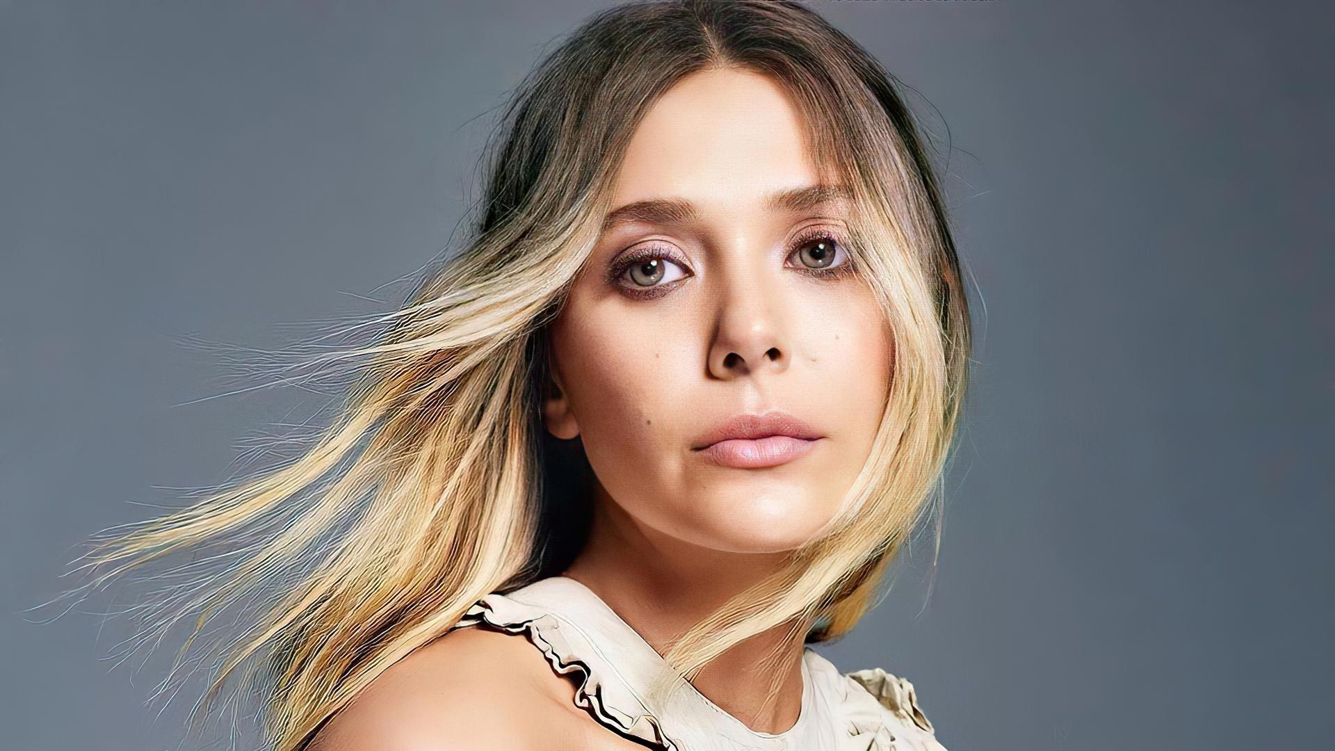 Wallpaper Sad girl, actress Elizabeth Olsen on a gray background