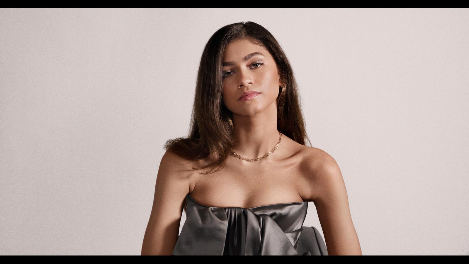 Wallpaper Serious girl actress and singer Zendaya on gray background