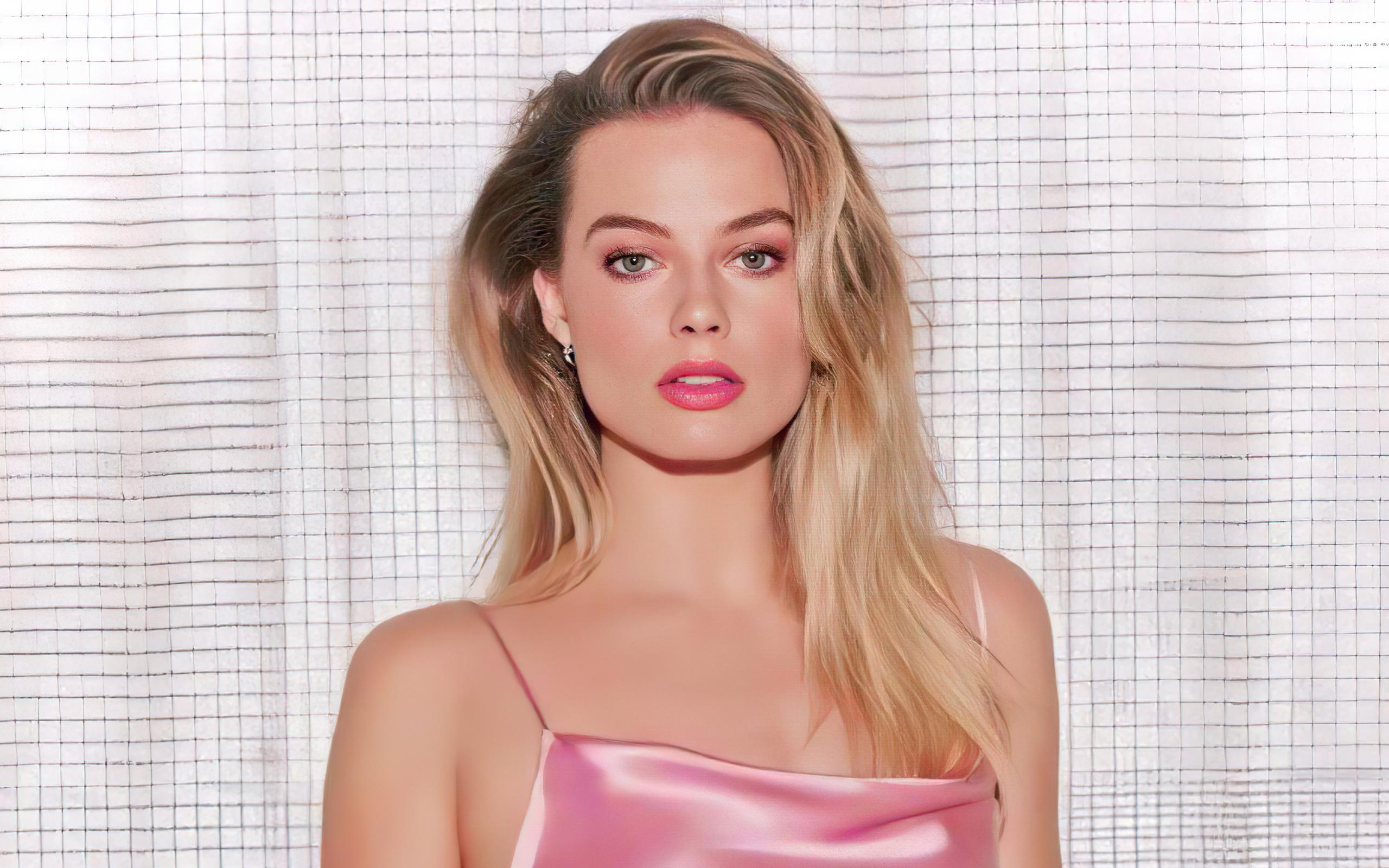 Wallpaper Young spectacular blonde actress Margot Robbie at the wall