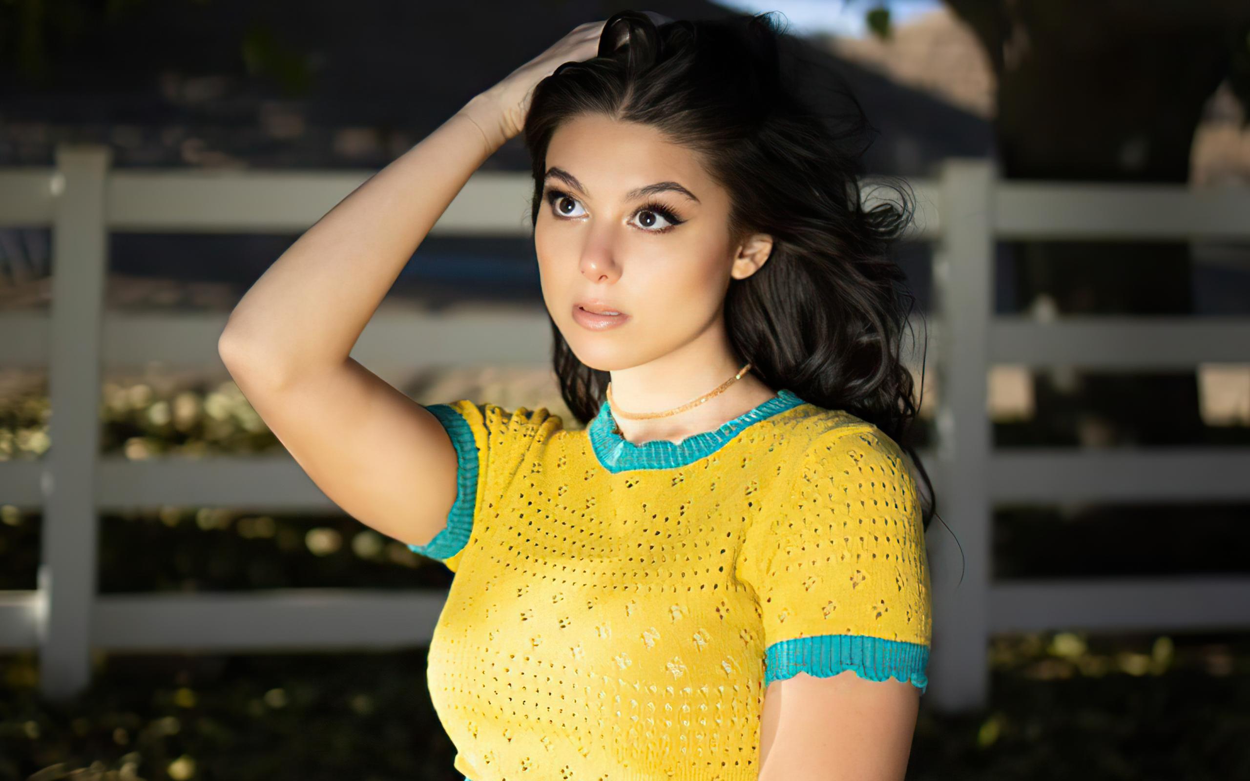 Wallpaper Young American actress Kira Kosarin with a hand in her hair