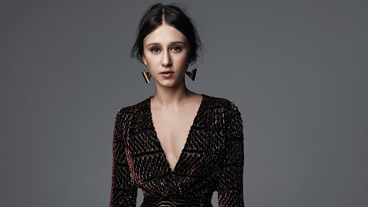 Wallpaper Young girl, American actress Taissa Farmiga on a gray background