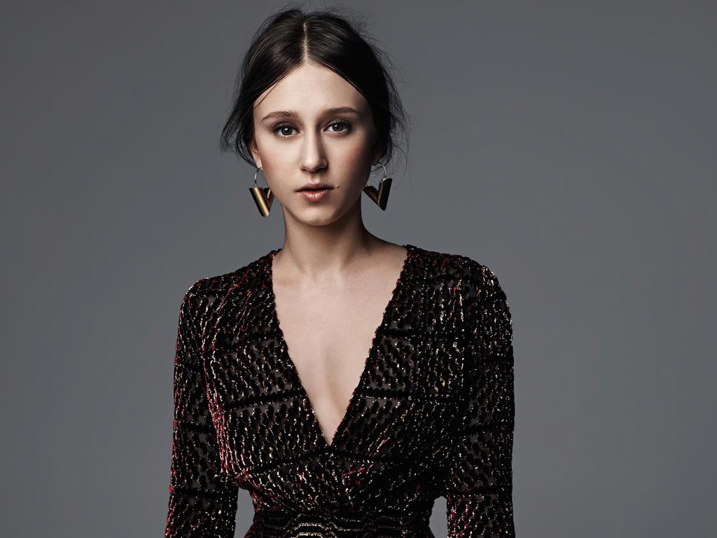 Wallpaper Young girl, American actress Taissa Farmiga on a gray background