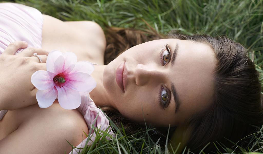 Wallpaper Actress Ana de Armas lies on green grass with a flower