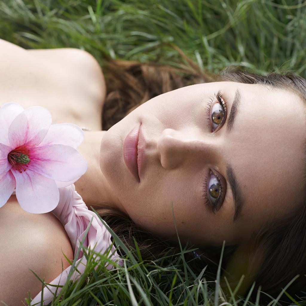 Wallpaper Actress Ana de Armas lies on green grass with a flower