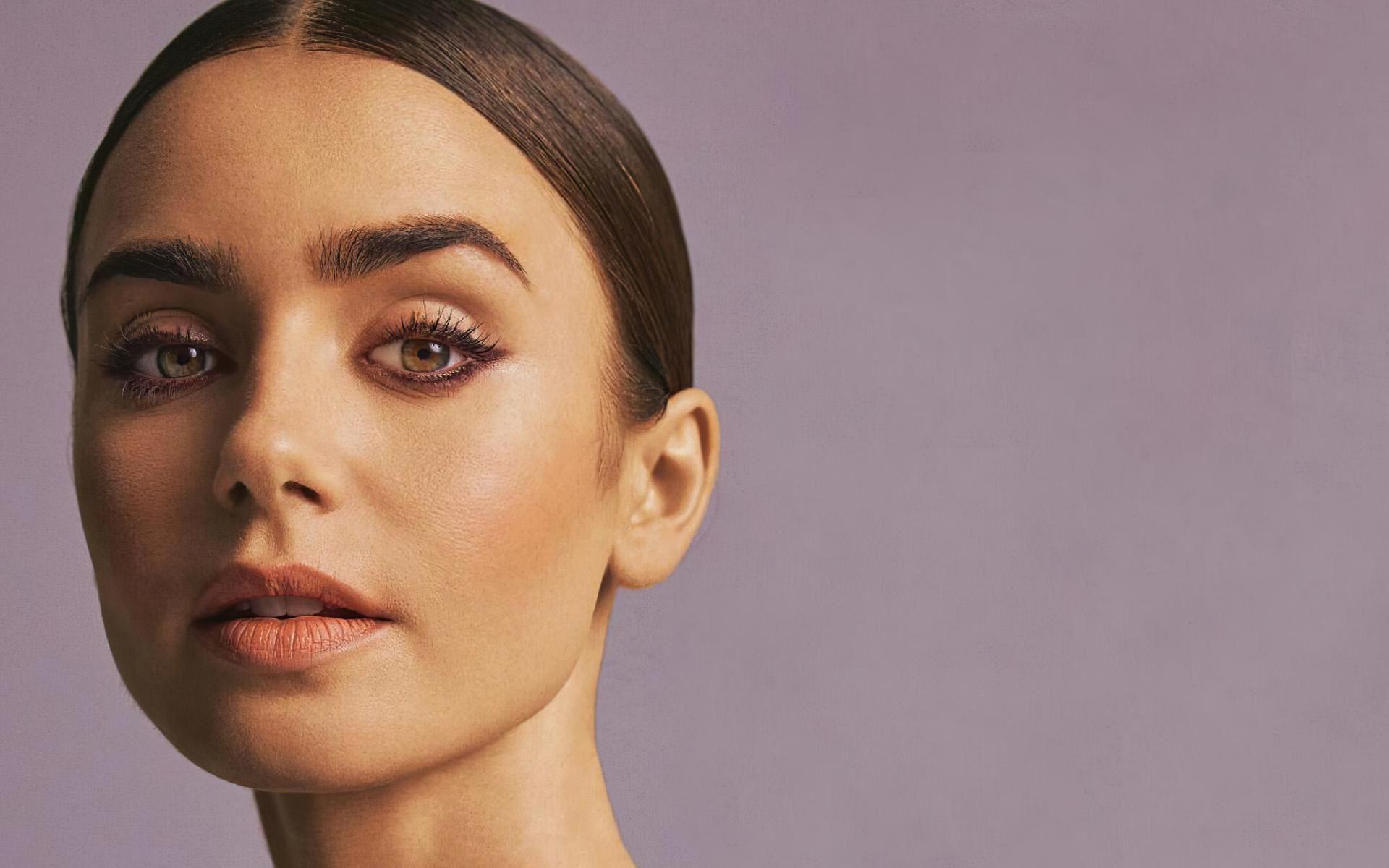 Wallpaper Actress Lily Collins on a pink background close up