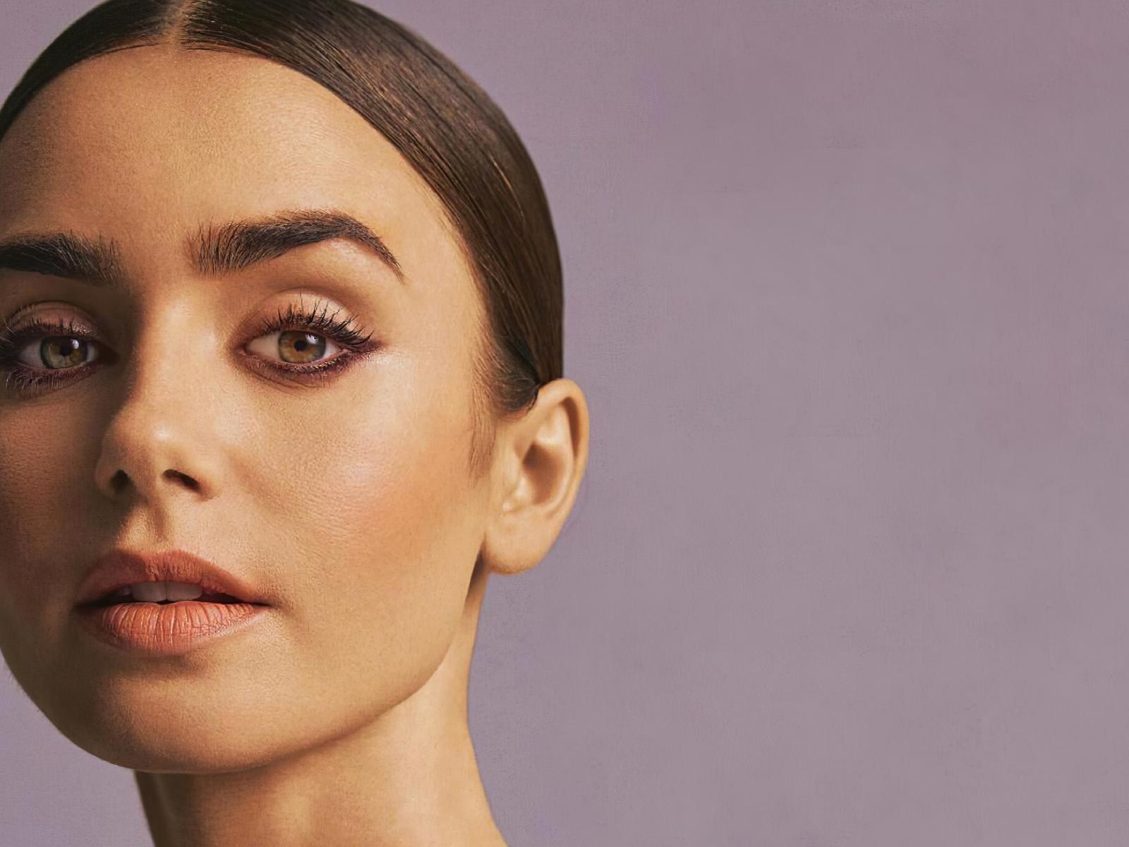 Wallpaper Actress Lily Collins on a pink background close up