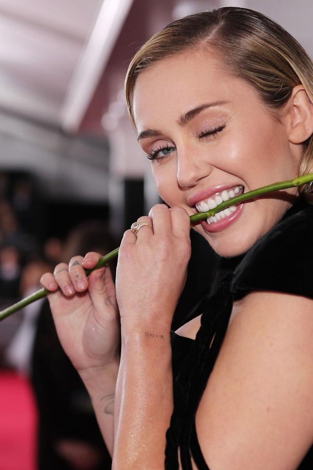 Wallpaper Singer Miley Cyrus with a rose in her teeth