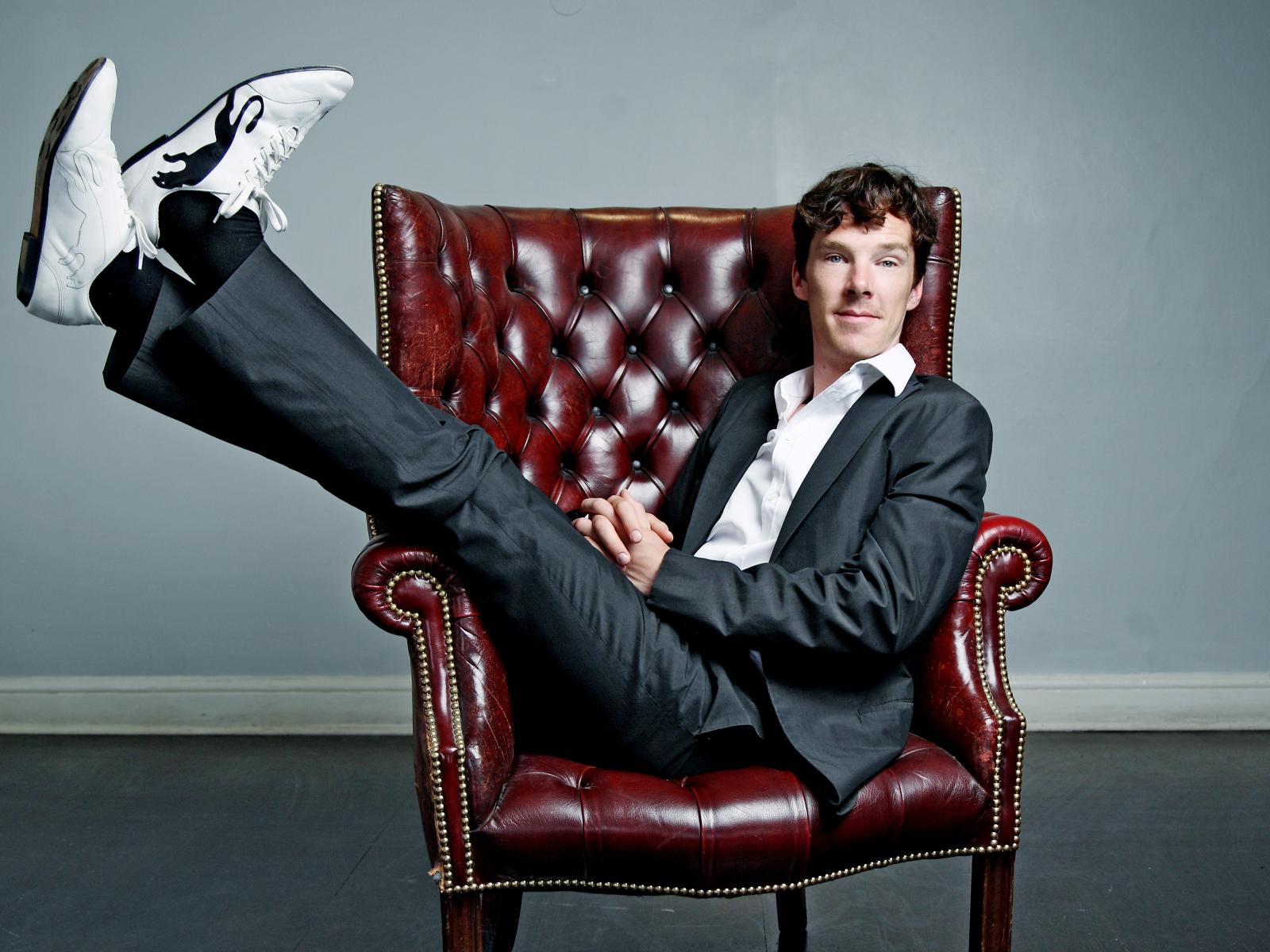 Wallpaper Actor Benedict Cumberbatch sits in a leather chair