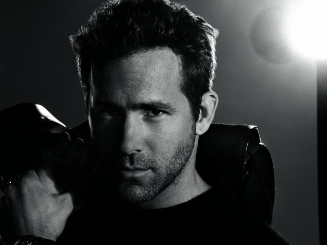 Wallpaper Popular actor Ryan Reynolds, black and white photo