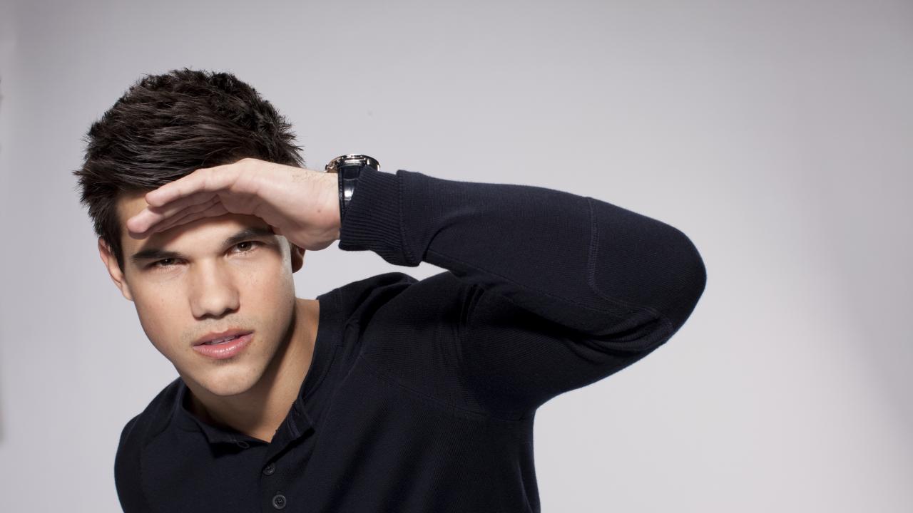 Wallpaper Handsome guy actor Taylor Lautner on a gray background