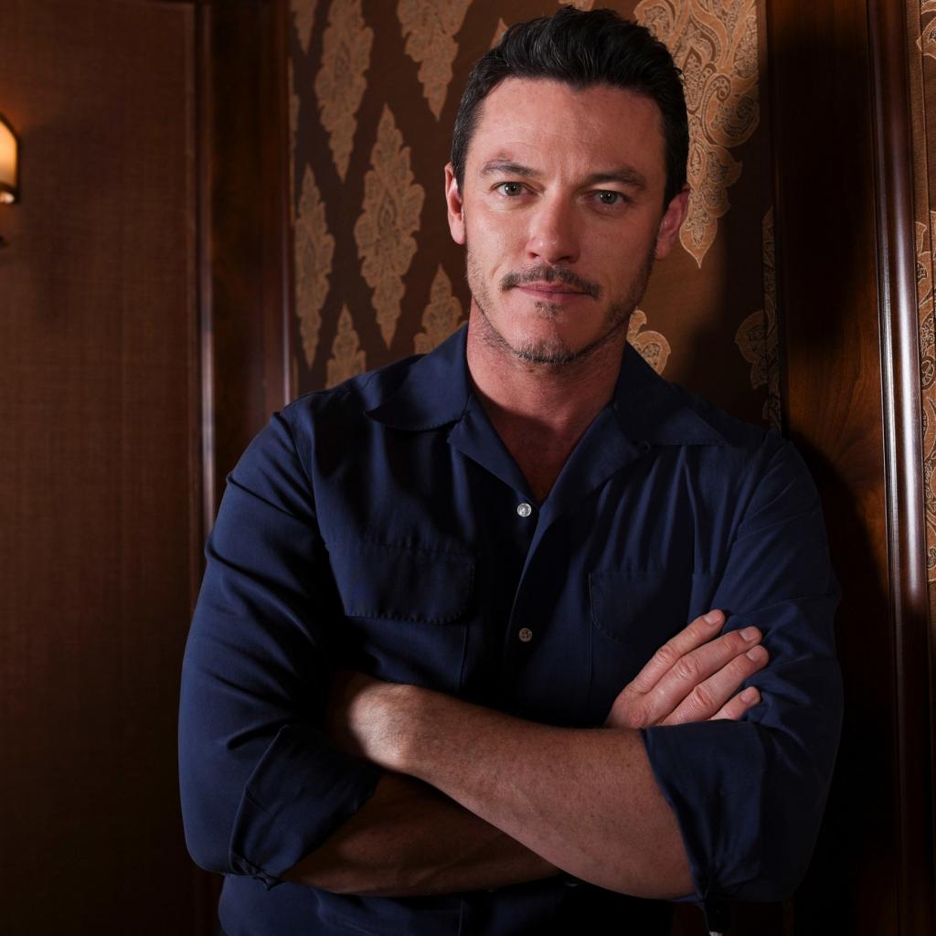 Wallpaper Actor Luke Evans in shirt stands against the wall